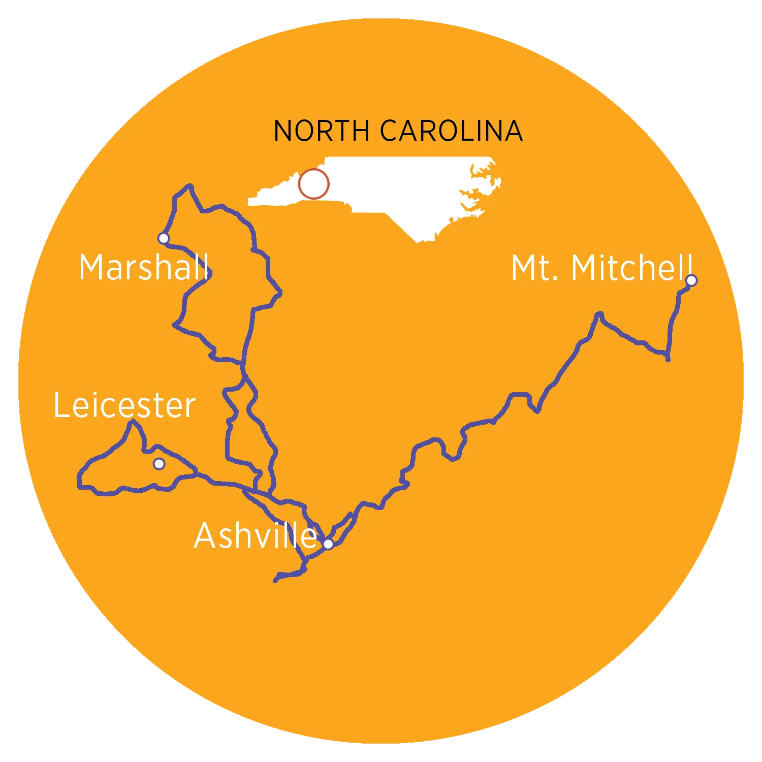 Day 4 After breakfast, we’ll be cycling into the rolling hills north of Asheville. Following the Big Laurel Creek and the California Creek, we’ll make our way around to explore the hidden wonders of Madison County and stop to visit Mars Hill, an adorable small town. We’ll have a picnic lunch while enjoying the nature around us along the banks of the Big Laurel Creek before heading back to Asheville. Dinner is on your own in Asheville, though it will be tough to make a bad choice in a city that the locals have nicknamed “Foodtopia.” 42 miles. ±3400’