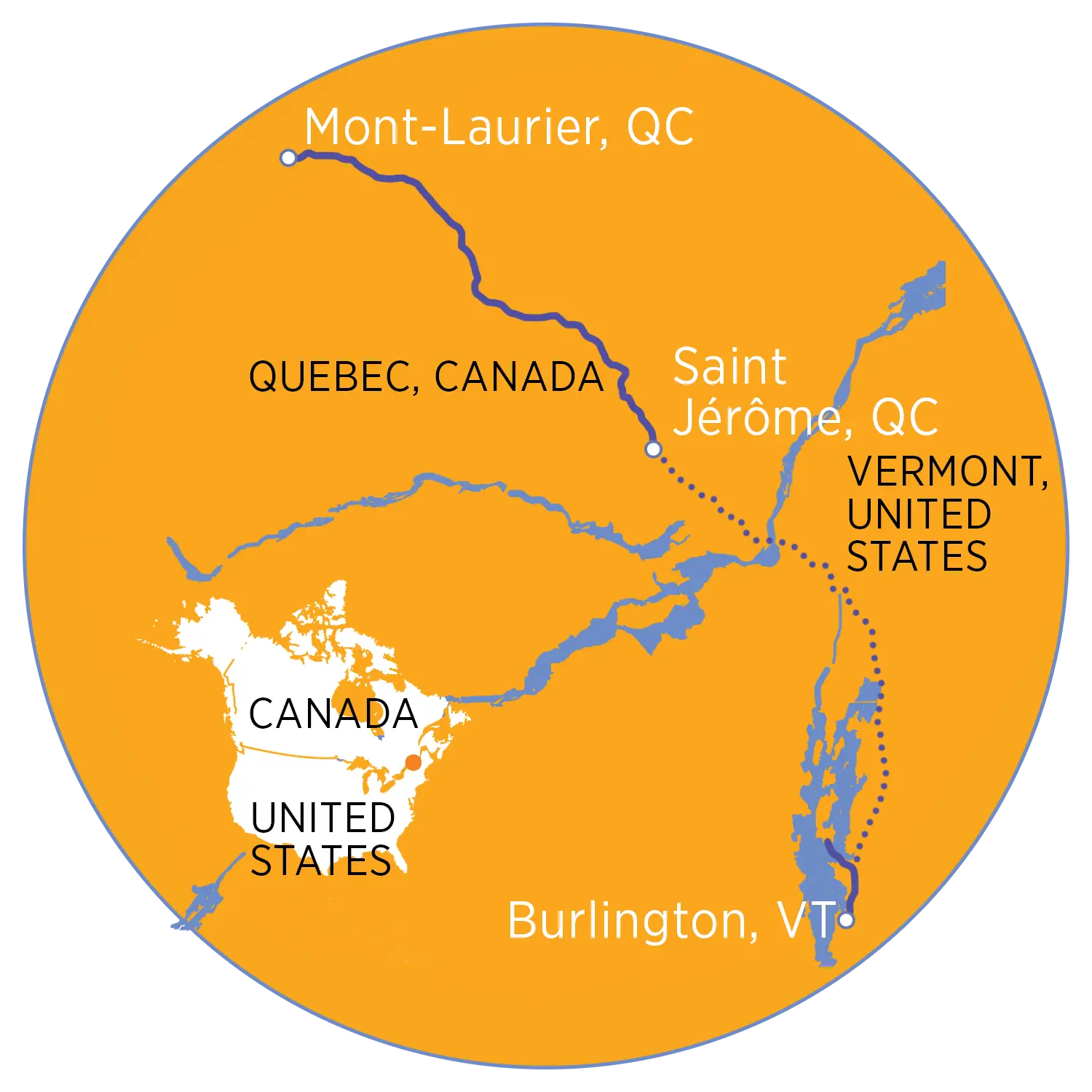 Drive or fly in and out of Burlington, VT, or fly into Burlington, VT, and home out of Montréal, QC.