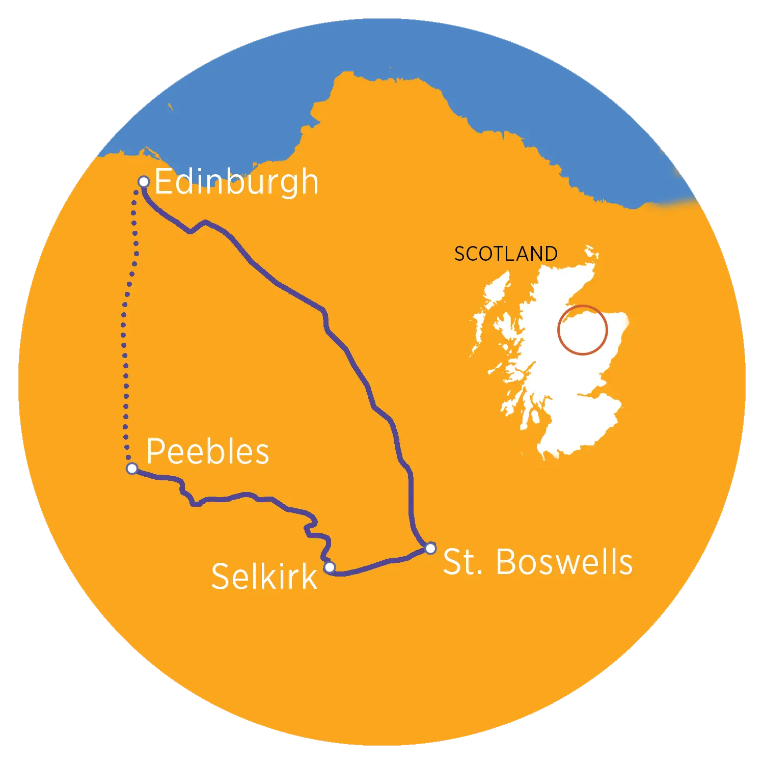 We’ll end in the charming town of Kelso. It sits at the confluence of the rivers Tweed and Teviot and is known for having the largest market square in all of Scotland. We’ll stay two nights on the cobblestone square in an eccentric historic landmark originally built in 1769 as a stagecoach inn. 41 miles.